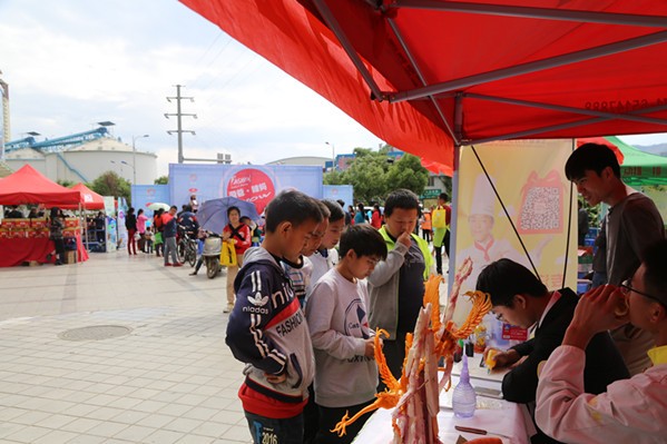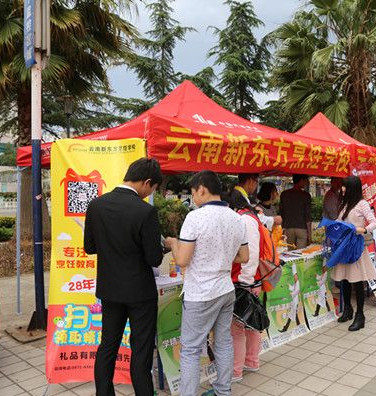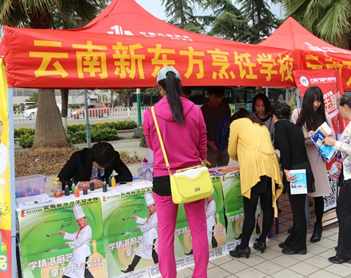 云南新东方烹饪学校展台前市民火爆围观