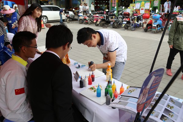 为了帮助“潮爸、辣妈”们从生活品味及美食、健康方面能更“潮”更“辣”,云南新东方烹饪学校受邀出席并参展。本次活动中,云南新东方以老师和学生组成的“参展团”主要向广大市民展示现场食品雕刻、3D果酱画等技艺,以精致的美食制作和秀色的美食作品来展示新东方特有的“潮”,同时向市民朋友赠送云南新东方西点专业学子制作的美味小西点。一边是精美绝伦的雕刻作品,一边是唇齿留香的小西点,再加上恰逢周末,市民纷纷表示,新东方很给力,让我们度过了一个有“味道”的周末。