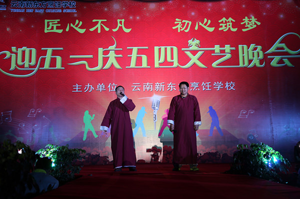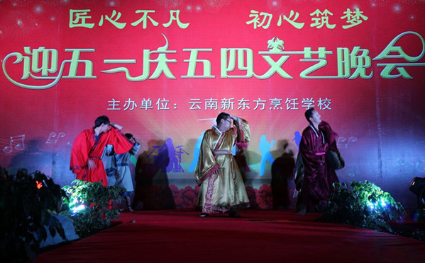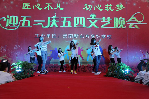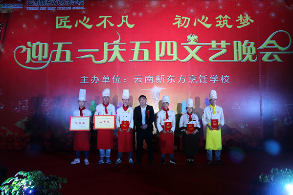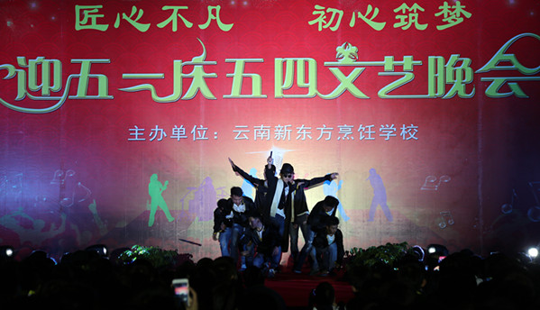 在五一国际劳动节即将到来之际,由云南新东方烹饪学校主办的主题为“匠心不凡、初心筑梦,庆五一迎五四大型文艺晚会暨校园活动颁奖晚会”于4月28日晚在云南新东方烹饪学校隆重举行。晚会现场人山人海、人气爆棚,美轮美奂的舞台,丰富多彩的节目,为现场的全校师生们献上了一场“奢华”的视听盛宴。