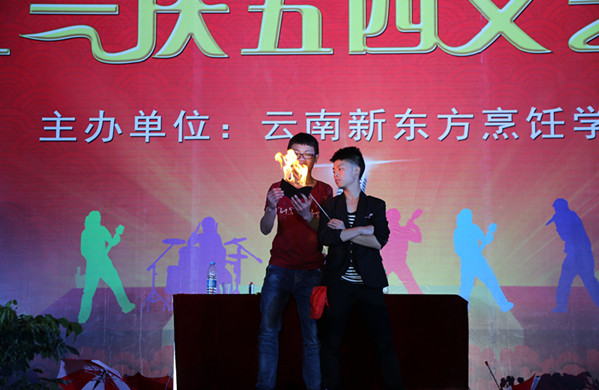 快乐的时光总是那么短暂,最后在精彩的魔术中整场晚会画上了完美的句号,云南新东方烹饪学校“匠心不凡、初心筑梦”庆五一迎五四晚会展现了云南新东方烹饪学校师生们的才华,也体现了新东方学子的青春活力和蓬勃朝气。物华天宝,人杰地灵,云南新东方烹饪学校会更加注重学生校园文化生活,全面提升学生综合素质,努力打造优秀的、多栖发展的厨师人才,揭开烹饪教育的新篇章。