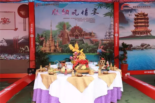 我校师生代表队精心烹饪的团体宴:版纳风情宴;热菜:普洱茶香虾、生煎乳饼、傣味手撕干巴、碳烤松茸、天麻汽锅鸡等;以及凉菜:风花雪月、爱伲山珍、柠檬撒撇等独特的云南特色特色菜肴,浓郁的名族风味,吸引了众多大师和参观者的眼球,载誉而归。
